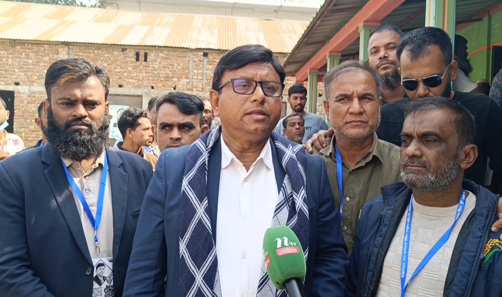 ভোট কেন্দ্র পরিদর্শন শেষে সাংবাদিকদের সঙ্গে কথা বলেন ইঞ্জিনিয়ার আশরাফ উদ্দিন বকুল। ছবি: নরসিংদী মিরর