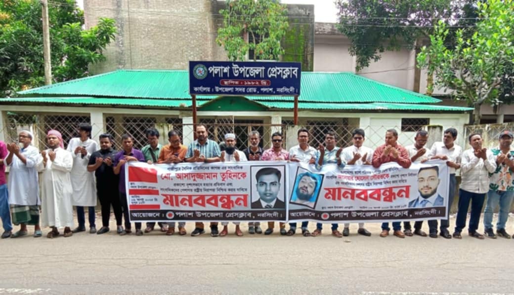 সাংবাদিক তুহিন হত্যার প্রতিবাদে পলাশে মানববন্ধন